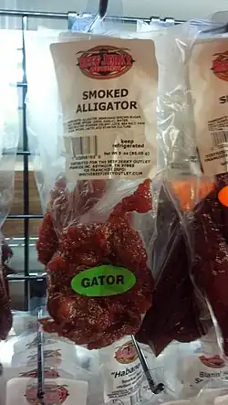 In the United States, gator meat is available for consumer purchase in specialty food stores, some grocery stores, and can also be mail ordered.[3][4]