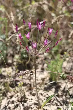 Allium iliense is a species of wild onion native to southeastern Kazakhstan.[2] Living in sandy areas, its loose inflorescence can detach when ripe and roll in the wind, spreading seeds much further in the manner of a tumbleweed.[3]