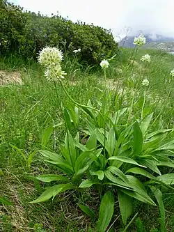 Allium victorialis, commonly known as victory onion, Alpine leek, and Alpine broad-leaf allium[5] is a broad-leaved Eurasian species of wild onion. It is a perennial of the Amaryllis family that occurs widely in mountainous regions of Europe (including Caucasus) and parts of Asia (Himalayas).[4][6]