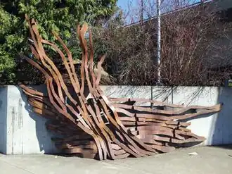 The sculpture is one of four by Rigga along the esplanade; the others are Echo Gate and Stack Stalk by Ean Eldred and Ghost Ship by James Harrison.[3] Alluvial Wall is part of the City of Portland and Multnomah County Public Art Collection courtesy of the Regional Arts & Culture Council.[4]