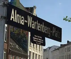 - Heike Haarhoff: "Späte Straßen-(Um)Taufe. Der neue Alma-Wartenberg-Platz wird heute gefeiert", in: taz (8. März 1997), Hamburg Spezial 66, S. 42.