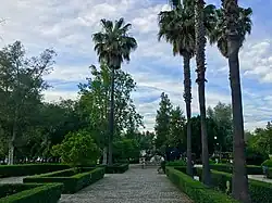This northern area has been expanded since the 60s and 70s and has been built around the road that exits town and head towards the northern part of Huelva, a mountain range. There are extense boulevards and wide pavements where many people walk and practice outdoor sport. The main sport centre is located here, with an area of 43,561m2, along with the two high schools, the park "Alcalde Mojarro" (46,500m2), the Wine Museum[66] and the CIECEMA (a scientific centre which includes a high-tech astronomic observatory[67]) and a rubber factory.[68]