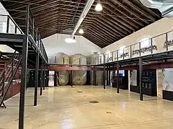Another architectural hallmark of the town are the towers that characterised the oil mills. When the mills were closed, the devil's doors of these towers were sealed and the olive oil presses, the settling jars, the spindle, etc. disappeared. One of the most notable mills that are preserved and have been restored is the Hacienda de Santa María (18th century). Finally, more than fifty wineries were opened in town. They consisted of several adjoining naves, with brick walls and pillars. The roof was usually made of curved tiles with a Spanish-style wooden truss structure and a large door gave access to the interior through the front gable. The side walls used to have rows of barred windows that allowed ventilation. The different naves are separated by arches.[57] Some wineries that have been restored in the 90s include the Bodega del Conde de Cañete (now Library “Ana María Matute”), the Bodega de los Hermanos Escolar (now the Wine Museum), the Molino de Cepeda (now the Town Museum) and the Bodegón de Serafín (19th century, now the visitor centre).