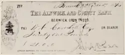 The Alnwick and County Bank was a short-lived bank, founded in Alnwick, Northumberland, England in 1858, and purchased by the North Eastern Banking Company in 1875.
