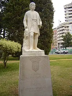 In the city of Huelva, Sánchez's purported birthplace, there are a number of memorials to him. There is a statue of Sánchez in the city park that commemorates the voyages of Columbus, 12 October Park, by sculptor León Ortega. There is also a smaller park in Huelva named for him, as well as a public high school.