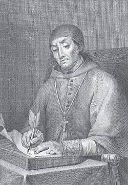 Alonso Tostado (also Al(f)onso Fernández de Madrigal, variously known as Alphonsus Tostatus, Tostatus Abulensis, and in Spanish as El Tostado or El Abulense; c. 1410[1] – 3 September 1455) was a Spanish theologian, councillor of John II of Castile and briefly bishop of Ávila.[2] His epitaph stated "Wonder of earth, all [that] men can know he scanned."[3]