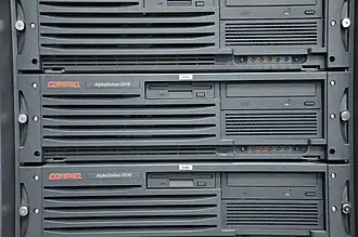 AlphaStation is the name given to a series of computer workstations, produced from 1994 onwards by Digital Equipment Corporation, and later by Compaq and HP. As the name suggests, the AlphaStations were based on the DEC Alpha 64-bit microprocessor. Supported operating systems for AlphaStations comprise Tru64 UNIX (formerly Digital UNIX), OpenVMS and Windows NT (with AlphaBIOS ARC firmware). Most of these workstations can also run various versions of Linux and BSD operating systems.