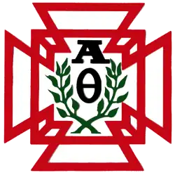 On April 24, 1952, the members of the Dartmouth chapter voted unanimously to stop recognizing the racial clause in Theta Chi's constitution.[2] Upon learning that the Dartmouth delegation to Theta Chi's national convention later that year planned to raise questions about the clause, the Alpha Theta chapter was derecognized by the national organization on July 25, 1952.[3] The house reincorporated as a local fraternity and adopted the name Alpha Theta.