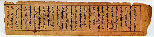 The Altan Tobchi, or Golden Summary (Mongolian script: ᠠᠯᠲᠠᠨ ᠲᠣᠪᠴᠢ Altan Tobči;[1] Mongolian Cyrillic: Алтан товч, Altan tovch), is a 17th-century Mongolian chronicle written by Guush Luvsandanzan. Its full title is Herein is contained the Golden Summary of the Principles of Statecraft as established by the Ancient Khans. The work is also named the Lu Altan Tobchi (Mongolian script: Lu Altan Tobči;[1] Mongolian Cyrillic: Лу Алтан товч, Lu Altan tovch) after its author to distinguish it from previous works with similar titles.