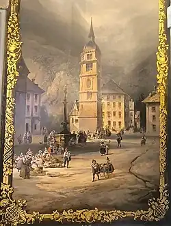 According to the legend, Altdorf's marketplace is the site where William Tell shot the apple from his son's head,[3] and in 1895 sculptor Richard Kissling unveiled a bronze statue commemorating the feat at the foot of an old tower.[13]