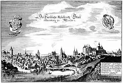 - The city wall remained in the north behind Johannisstraße and in the south at Langengasse. Two towers are preserved at Langengasse and Kunstgasse.