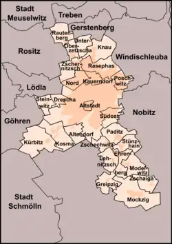 - Altenburg (including the villages Drescha, Kauerndorf, Poschwitz, Rasephas, Steinwitz and Zschernitzsch)