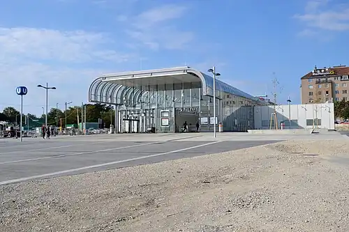 For this purpose, and for the planned construction of a new neighborhood around the subway station or the traffic circle, a press release by the Planning Department of the Vienna City Administration was published in the spring of 2014.[1] At the end of 2015, project partner Asfinag announced that the construction of the new neighborhood would be postponed for several years for economic reasons.[2]