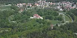 The Schlosswirtschaft Oberschleißheim Biergarten is located on the palace grounds, with seating for 1,000.[1] Its roots trace back to 1597, when the founder of the Hofbräuhaus brewery retired to a farm there. Following the building of the New Schleißheim Palace in the 17th century, the Schlosswirtschaft (palace restaurant) provided catering to its workers and servants. A royal brewery followed,[2] enjoying a long period of success before closing.[1] Under the shade of chestnut trees Hofbräuhaus beers and traditional Bavarian fare are served today, enjoyed with a picturesque view of the palace, particularly at sunset.[1]