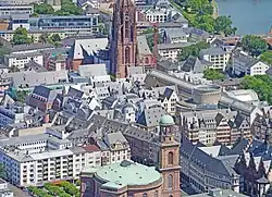 The Altstadt (German pronunciation: [ˈaltˌʃtat] ⓘ, lit. 'old town') is a quarter (Stadtteil) of Frankfurt am Main, Germany. It is part of the Ortsbezirk Innenstadt I and is located on the northern Main river bank. It is completely surrounded by the Innenstadt district, Frankfurt's present-day city centre. On the opposite side of the Main is the district of Sachsenhausen.