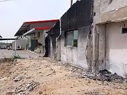 Intense fighting continued, with the combatants only separated by around 40–50 meters. Between 9:30 and 9:45 AM, a Wolf Armoured Vehicle carrying Israel Border Police officers arrived and briefly assisted in transporting some of the defenders from the front gate to the place of fighting near the recreational area, taking heavy fire while doing so, before it left after being dispatched to Kfar Aza. At this point, the security team members had poorer cover than the militants, who had taken positions behind concrete barriers. The kibbutz defenders rushed from place to place, shooting and taking cover. At least one more militant was killed in the fighting. The situation for the defenders became increasingly desperate, with three wounded, much of their ammunition expended, and militants seen roaming freely around the perimeter fence. However, seemingly deterred by the fierceness of the defense they encountered and the death of their commander, the militants abandoned their attack on the residences and began moving towards easier targets. They subsequently attacked the foreign workers' residences and nearby buildings and storehouses.[1] While the defenders were successful at keeping militants from accessing the kibbutz living quarters, they failed to prevent the attack on the foreign workers' quarters, which were closer to where the fence was breached.[2]