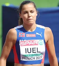 During the 2015 season (her sophomore year at USC) Iuel set both Danish and Norwegian under-23 records in the women's 400 metres hurdles, running 55.92 as a Dane and 56.36 as a Norwegian.[7] She placed seventh at the 2015 NCAA championships with 56.99.[7]