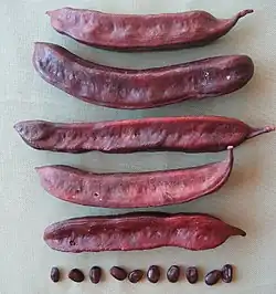 The fruit is a 4-sided pod that is glossy brown and up to 17 cm long.[3]
