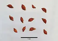 The seeds are attractive to ants, as the seed is coated in an edible elaiosome. Due to this edible coating, the ants disperse the seeds.[7][6]