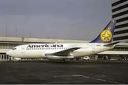 Americana de Aviación was founded in 1990 and began operations in 1991 using a Boeing 727-077 with regional routes within Peru. Founders were: Juan Manuel Pereira Medina (President-Founder) and Victor D. Ortiz de Villate (General Manager). In 1996, they sold their majority stock participation to Luis Chan Lay who named his partner, Leandro Chiok Chang (new Executive President), as his front man. In 1997, the Peruvian Government grounded all B727-100s older than 20 years and Americana saw its aircraft grounded. Soon, the 727s were replaced with Boeing 737-200s but bad administration by the new owners and a bad financial picture in South America, saw Americana forced to cease operations by 1997. [1]