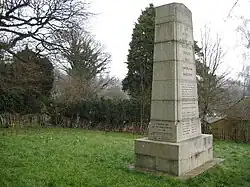 It was established in 1931 by The Protestant Alliance. The memorial was unveiled by a Mrs L. R. Raine, a direct descendant of martyr Thomas Harding, who is commemorated on the memorial.[1] It is located near the Rectory or Parsonage Woods opposite Ruccles Field. Access is from a footpath from or a separate footpath from Station Road.[2]