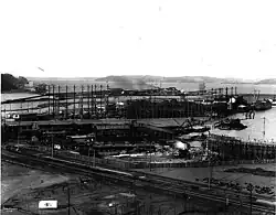 The Ames Shipbuilding and Drydock Company was established in 1916 by businessman Edgar Ames.[3][4] Construction of the shipyard began in December 1916, and production of its first vessels had begun by March 1917.[5] The yard included four shipways and a dry dock, as well as a blacksmith shop, machine shop, boiler shop, and other facilities.[6] It was located on the Duwamish West Waterway across from Harbor Island in Elliott Bay.[3] The yard produced 25 vessels for the United States Shipping Board during World War I,[3] including 23 cargo ships and 2 steel tankers.[7]