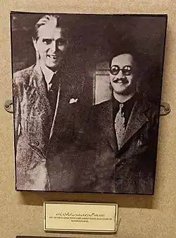 ![]() The picture of Raja of Mahmudabad, Mohammad Amir Ahmad Khan with Muslim League leader, Muhammad Ali Jinnah (1937), is inscribed in the museum collection of the Lahore Museum. | |