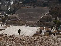 Amman began to be resettled in 1878, when several hundred Muslim Circassians arrived following their expulsion from the North Caucasus by the Russian Empire during the events of the Russo-Circassian War.[11] Between 1878 and 1910, tens of thousands of Circassians became refugees in the Ottoman Empire, which had moved large numbers of them into its province of Syria.[56] The Ottoman authorities directed the Circassians, who were mainly of peasant stock, to settle in Amman, and distributed arable land among them. Their settlement was a partial manifestation of the Ottoman statesman Kamil Pasha's project, which did not materialize, to establish the Amman Province (vilayet) which, along with other sites in its vicinity, would become Circassian-populated townships guaranteeing the security of the Damascus–Medina highway.[57] The first Circassian settlers, who belonged to the Shapsug tribe,[58] lived near Amman's Roman theater and incorporated its stones into the houses they built.[11] The English traveller Laurence Oliphant noted in his 1879 visit that most of the original Circassian settlers had left Amman by then, with about 150 remaining.[58] They were joined by Circassians from the Kabardian and Abzakh tribes in 1880–1892.[58]