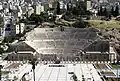 There are traces of Roman construction all across Jordan. In Amman the most conspicuous structures include the Great Temple (inaccurately known as the "Temple of Hercules") at the Amman Citadel, the Roman Theatre, the Odeon, and the Nymphaeum. The two theaters and the nymphaeum fountain were built during the reign of Emperor Antoninus Pius around AD 161. The theatre was the larger venue of the two and had a capacity for 6,000 attendees. It was oriented north and built into the hillside, to protect the audience from the sun. To the northeast of the theatre was a small odeon. Built at roughly the same time as the theatre, the Odeon had 500 seats and is still in use today for music concerts. Archaeologists speculate that the structure was originally covered with a wooden roof to shield the audience from the weather. The Nymphaeum is situated southwest of the Odeon and served as Philadelphia's chief fountain. The Nymphaeum is believed to have contained a 600 square meters (6,500 sq ft) pool which was 3 meters (9.8 ft) deep and was continuously refilled with water.[38]