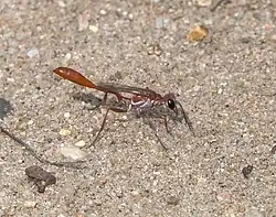 Ammophila ferruginosa is a species of thread-waisted wasp in the family Sphecidae, found in North America.[1][2][3][4]