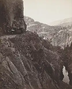 The influence of the Hudson River School and Luminism was focused on a western United States location about 1870 when Albert Bierstadt (1830–1902) produced Sunrise, Yosemite Valley. This grandiose example of the artist's work was completed after Bierstadt's third trip to the American west.[16] It was added to the Carter collection in 1966. Another Hudson River School painter who headed west was Thomas Moran (1837–1926). Moran, famous for his paintings of the Yellowstone region of Wyoming, is represented in the Carter collection by his 1874 oil Cliffs of Green River.