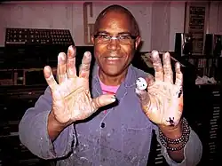 ![]() The artist with inky hands at a "Pull-a-Print" event in Wisconsin, 2010. | |