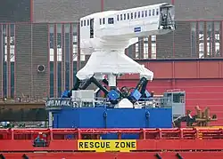 The Ampelmann system is an offshore personnel transfer system which was founded in 2008 as a spin-off of the Delft University of Technology. The motion compensation platform allows access from a moving vessel to offshore structures, even in high wave conditions. transferring offshore crew from various types of vessels to offshore oil & gas platforms, offshore turbines and all other fixed and floating structures at sea.[1][2]