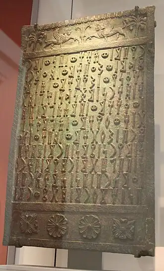 - ^ "British Museum - Inscribed cast bronze tablet". Archived from the original on 2014-02-23. Retrieved 2014-02-16.
