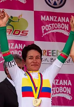 Ana Cristina Sanabria Sánchez (born 2 May 1990) is a Colombian professional racing cyclist,[2] who rides for UCI Women's Continental Team Colombia Tierra de Atletas–GW–Shimano.[3] She won the Colombian National Time Trial Championships four times (from 2015 to 2017 and 2020), and the Vuelta a Colombia Femenina Oro y Paz in 2016 and 2017.[4]