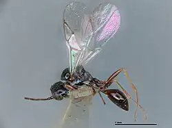 Anacharis zealandica, commonly known as the lacewing parasitoid wasp[2], is a New Zealand wasp that parasitises lacewings like Micromus tasmaniae and Drepanacra binocula.[3][4]
