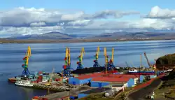Anadyr is an important sea port on the Bering Sea and is connected to almost all major Russian Far Eastern seaports. Anadyr's Ugolny Airport serves major and minor cities in the Russian Far East with connections to Khabarovsk, Vladivostok, and Moscow, while Bering Air provides charter flights to Nome, Alaska in the United States. The airport is on the other side of the Anadyrsky Liman, and from January to May, transportation from the airport to Anadyr is by ice road.[12] In the summer there is a ferry which transports passengers across the Anadyr River to the airport,[41] but during spring and autumn when the river ice is melting and full of drifting ice floes, the only means of transportation to the airport is via helicopter.[41]