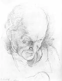 They were the first English manifestation of the formalised artistic "brotherhood", an artistic movement whose aims included elements of communal living and promotion of a general vision for society. Continental groups of this sort included the German Nazarene movement and the Barbus in Paris, and the most successful later English example was to be the Pre-Raphaelite Brotherhood. Like these groups they represented an oppositional break-away from the academic art establishment, and looked back to an idealized version of the past. They pursued equality among their members as a reaction to the hierarchical structure of the conventional art world. Like Nazarenes and Barbus, they promoted the wearing of special revivalist costume, though only Palmer seems often to have worn it in practice; it seems to be shown in some portraits of Palmer by Richmond such as the bust-length miniature and chalk drawing (1829, both National Portrait Gallery), which shows a round-necked pleated smock under a coat with a loose untidy collar and lapels, combined with somewhat Christ-like long hair and a beard.[2] The Ancients were probably aware of the Nazarenes, but probably not of the Barbus.[3]