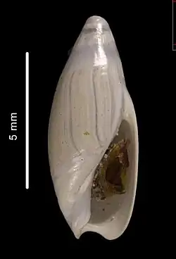 | Shell of Micrancilla longispira (specimen at the Smithsonian Institution) | |
