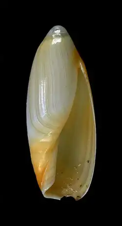 | Shell of Ancillista aureocallosa (specimen at MNHN Paris) | |