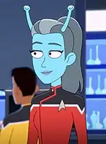 Andorians are a fictional race of humanoid extraterrestrials in the American science fiction franchise Star Trek. They were created by writer D. C. Fontana. Within the Star Trek narrative, they are native to the blue icy Class M moon, Andoria (sometimes referred to as Andor[1]). Distinctive traits of Andorians include their blue/green skin, a pair of cranial antennae, and white hair.[2]
