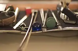 Neumann plays on an "indoor piano" made for her by the piano maker Bernd Bittmann. Inspired by Zeena Parkins' prepared harp, she designed the indoor piano to consist of only the soundboard and the strings.[2] She prepares the piano with everyday objects, such as cutlery, razors, or a potato masher.