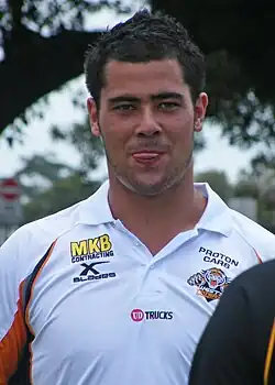 As a teenager, Fifita trialled with the Sydney Roosters and the North Sydney Bears, but was considered lightweight, even though he was playing as a winger or centre at the time. Fifita said he, "tried eating and all that stuff but it didn't work and then one day I just blew out. It wasn't until I was 17 or 18 that I put the size on. Maybe it was the grog, I don't know. I was seriously pushing to get to 80 kg back then. I think I was about 70 kg."[5] Fifita would eventually sign with the Wests Tigers and later played in their NYC team in 2009, including playing at prop in the 2009 NYC Grand Final against the Melbourne Storm in the 22–24 loss.[6]