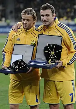 - ^ "Andriy Shevchenko – Century of International Appearances". rsssf.org. Archived from the original on 23 April 2023. Retrieved 8 November 2019.