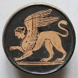 The sphinx was the emblem of the ancient city-state of Chios, and appeared on seals and the obverse side of coins from the 6th century BC until the 3rd century AD.[27]