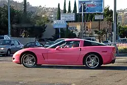 Her billboards have been featured in a number of movies and television series, including the opening credits of Moonlighting and atop the building occupied by producer Harry Zimm (played by Gene Hackman in Get Shorty), and have been spoofed in shows such as The Simpsons, Futurama, and BoJack Horseman. Another distinctive feature of Angelyne's celebrity persona is her pink Corvette. She was noted for concealing her real name, age, and identity, which did not become public knowledge until 2017.