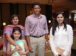 Kumble married Chetana in 1999.[17] They have three children – a son named Mayas, and two daughters, Aaruni and Svasti.[18] He is a vegetarian.[19]