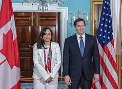 115. ^ Anand, Anita [@AnitaAnandMP] (February 7, 2025). "With U.S. tariffs paused for 30 days, we have an important opportunity to build a long-term prosperity agenda for Canada" (Tweet) – via Twitter.
