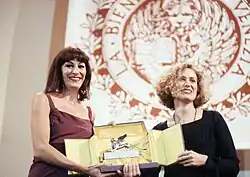 Her next directorial effort, the Irish dramedy Agnes Browne (1999)—in which she also starred as the title character—released to mixed reviews. The New York Times reviewer Stephen Holden found it "nothing more than a series of homey skits loosely woven into a portrait of a working-class saint."[39] Nevertheless, the film won the Youth Jury Award at the 1999 San Sebastián International Film Festival and received a Grand Prix nomination at the Ghent International Film Festival the same year. Huston appeared as an affluent English woman, alongside James Fox, Nick Nolte, Kate Beckinsale, and Uma Thurman, in James Ivory's period drama The Golden Bowl (2000), based on the 1904 novel of the same name by Henry James.[40]