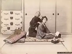 Anma was popularised in the seventeenth century by acupuncturist Sugiyama Waichi, and around the same time the first books on the subject, including Fujibayashi Ryōhaku's (藤林良伯) Anma Tebiki (按摩手引 "Manual of Anma"), appeared.[3] The Fujibayashi school is the foundation of modern anma.[4] Anma (masseurs) were often nomadic, earning their keep in mobile massage capacities, and paying commissions to their referrers. In the nineteenth century, the image of anma suffered somewhat from an association with the ukiyo lifestyle of urban Japan, and it was subsequently less well-regarded as a therapy.[5]